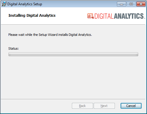 The system displays the Installing Digital Analytics window.