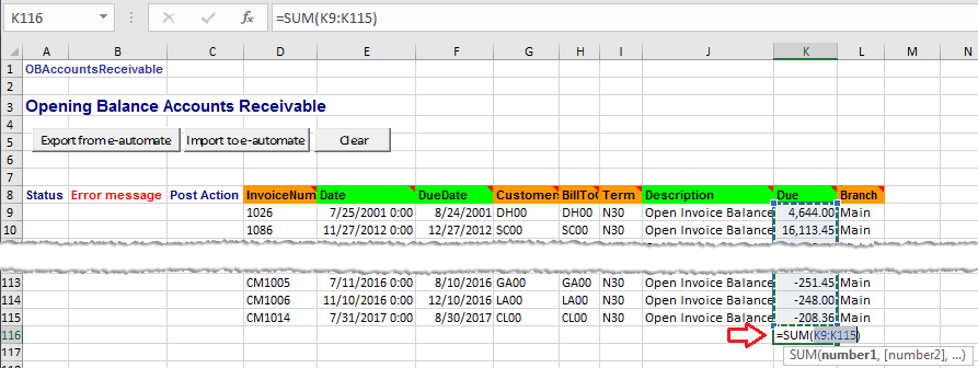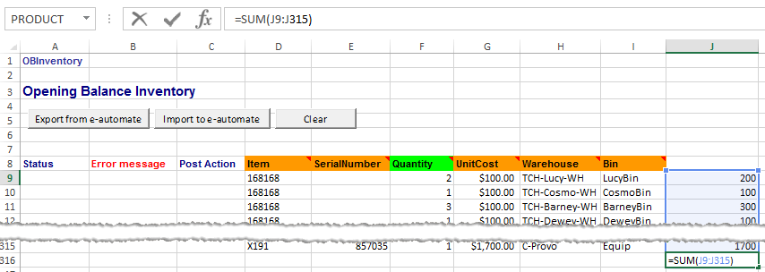 The Data Import/Export Spreadsheet is only for importing information to and/or exporting information from e-automate. You cannot edit data in e-automate by exporting the data into this tool, making changes, and then importing the edited data back into e-automate. Any changes you need to make to your data must be done in e-automate or modified with the Inventory Item Utility Spreadsheet.
