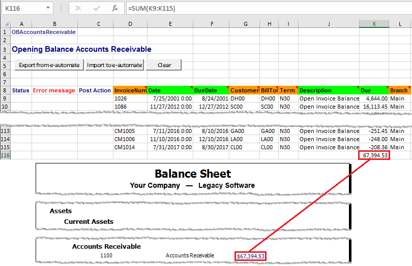 With this cell selected, click the Home tab (or the Formulas tab) and select AutoSum to have Excel enter in that cell the formula for adding all the values in the column. The calculated value should match the sum of the lease principal balances from your legacy software.