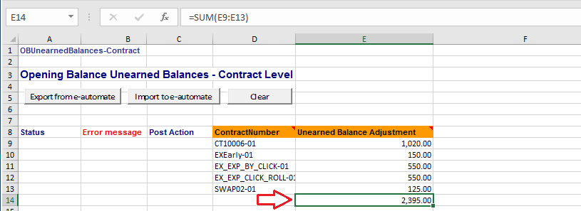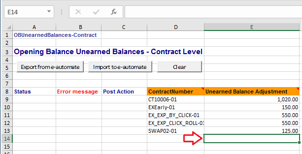 Inserted Principal Balance: When Lease Principal Balance Import Mode is set to option 3 (Override) and the principal balance e-automate calculated based on the information provided does not match exactly the amount entered in the Lease Principal Balance column for this row, this column lists the principal balance e-automate calculated and imported for this row.