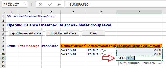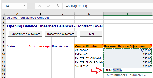 With this cell selected, click the Home tab (or the Formulas tab) and select AutoSum to have Excel enter in that cell the formula for adding all the values in the column. The calculated value should match the sum of the unearned interest balances from your legacy software.