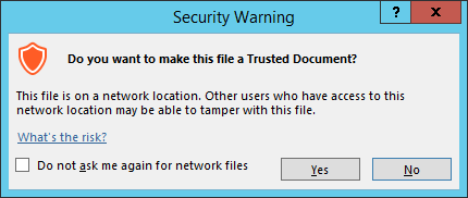 ... click [Yes] to prevent the system from displaying the [Enable Content] message in the future when opening this document or click [No] to have the system redisplay the [Enable Content] message each time you open this document.