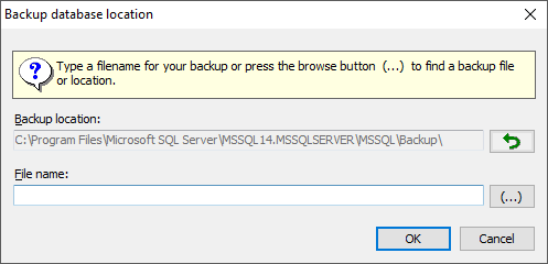 To use the default SQL server backup file location, click the Restore to SQL server default icon (the green arrow icon to the right of the Backup location field).